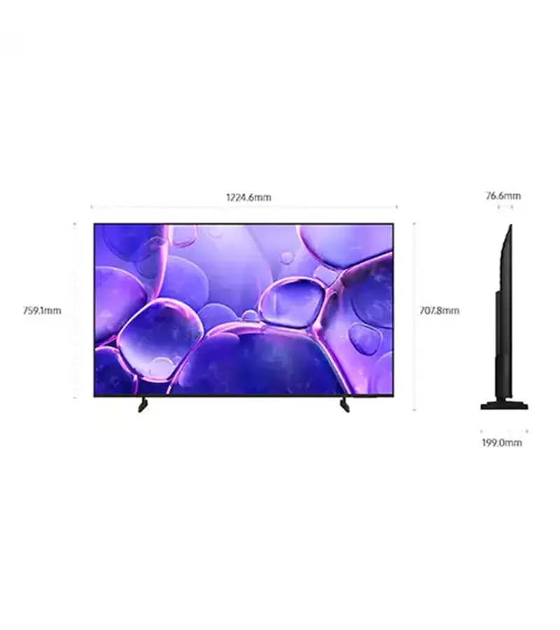 The basic stand of this Samsung 55 inch U8000F Crystal UHD 4K Smart TV measures 812.6 * 199 mm. Because of this, it provides solid stability on flat surfaces, ensuring your TV stays secure. Moreover, the stand is slim and stylish, which complements the bezel less design and slim body. Since the Crystal UHD 4K Smart TV UA55U8000F offers powerful features like Auto Game Mode for low latency and Smart TV powered by Tizen for easy streaming and apps, the stand gives you the confidence to enjoy it fully. Therefore, your TV is both stable and stylish.